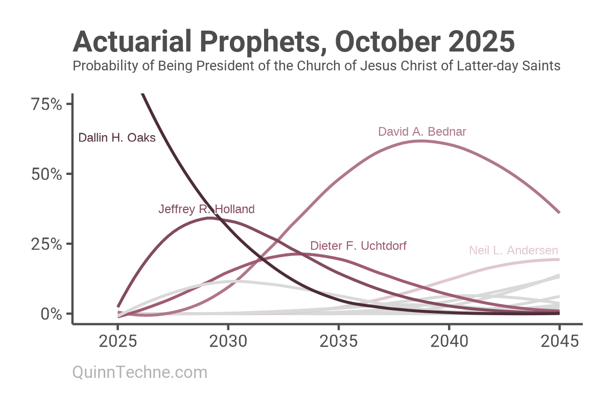 This is a forecast of the succession of the presidents of the Church of Jesus Christ of Latter-day Saints. See the original post for context.